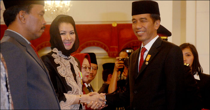 Presiden RI Joko Widodo menyematkan tanda kehormatan Satyalancana Karya Bhakti Praja Nugraha Photo: Istimewa