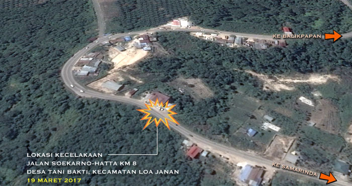 Kecelakaan maut yang melibatkan sebuah mobil Daihatsu Sirion dan sepeda motor terjadi di Jalan Soekarno-Hatta, KM 8 Desa Tani Bakti, Kecamatan Loa Janan, Kabupaten Kutai Kartanegara (Kukar), Minggu (19/03) pagi kemarin.