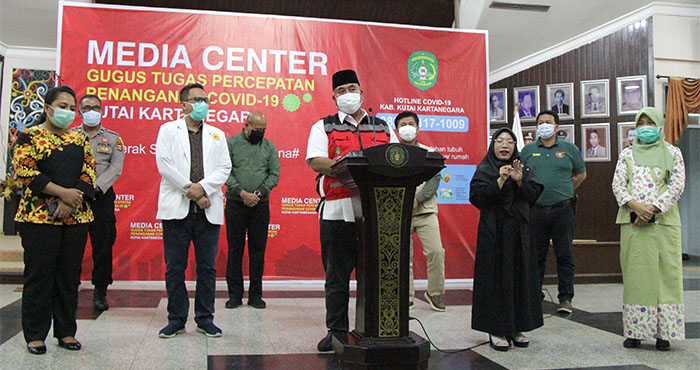 Bupati Edi Damansyah didampingi Kepala Dinas Kesehatan Kukar dr Martina Yulianti saat menginformasikan kesembuhan pasien COVID-19 Kukar Photo: Agri