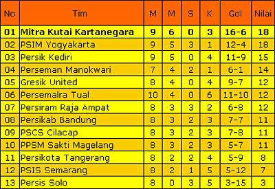 Sementara bagi Perseman Manokwari, kemenangan atas Mitra Kukar membuat tim ini terus merangkak ke papan atas dengan raihan 14 poin. Apalagi tim ini baru bertarung 7 kali, atau masih unggul 2 laga dibandingkan Mitra Kukar, PSIM Yogyakarta dan Persik Kediri yang sama-sama telah berlaga sebanyak 9 pertandingan. (win)