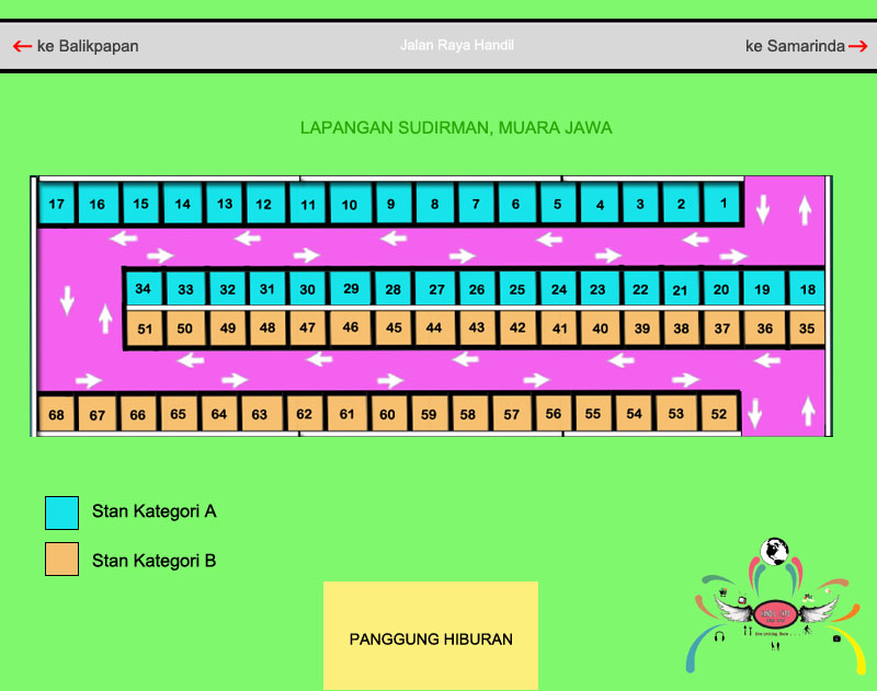 Pihak panitia dari Abiel Production menyiapkan 68 stan berukuran 3x3 meter untuk Handil EXPO HFMF 2015 yang dipusatkan di Lapangan Sudirman Handil II itu.