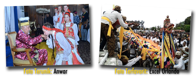 Sementara untuk Foto Terfavorit berhasil diraih Excel Orlando setelah karya fotonya yang berjudul "Ngulur Naga" memperoleh jempol atau tanda suka terbanyak di Facebook Visiting Kutai Kartanegara yakni sebanyak 812 dukungan.