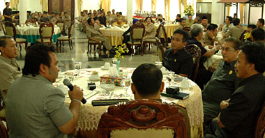 Sementara Assisten II Pemkab Kukar Dr H Aji Raden Muh Haryanto Bachroel SE MM kepada rombongan asal Gresik secara panjang lebar memaparkan program pembangunan Kukar yang terangkum dalam Gerakan Pengembangan dan Pemberdayaan Kutai (Gerbang Dayaku).