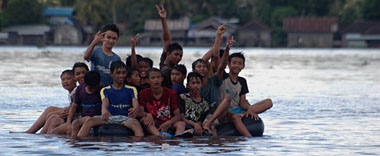 Seperti yang terjadi hari ini ketika banjir lebih dalam dibanding tahun-tahun sebelumnya, hampir di seluruh jalan-jalan utama kota Tenggarong yang terendam banjir dijadikan ajang bermain oleh anak-anak maupun remaja.