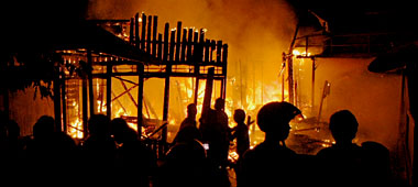 Menurut kesaksian warga setempat, api mulai mengamuk dari sebuah rumah sederhana milik Ab. "Rumah tersebut tiap malam memang selalu menggunakan penerangan lilin karena tidak tersambung aliran listrik," tutur salah seorang tetangga rumah yang naas tersebut.