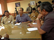 Setelah berorasi di teras depan Kantor Bupati Kukar, para perwakilan pengunjuk rasa akhirnya diajak berdialog oleh Wakil Bupati Samsuri Aspar di ruang kerjanya.