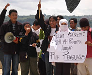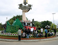 Aksi mahasiswa juga dilakukan di Tugu Adipura, depan Pasar Seni Tepian Pandan Photo: Yanda