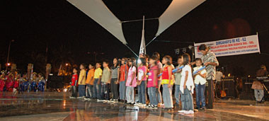 Tidak hanya tarian tradisional yang disuguhkan. Masyarakat Tenggarong juga dihibur dengan nyanyian lagu-lagu daerah dan lagu nasional yang dibawakan oleh anak-anak Kelurahan Jahab, Kecamatan Tenggarong, yang diiringi kolaborasi musik etnik dan modern.