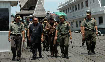Setelah bersilaturahmi dengan jajaran Kodim 0906/Tenggarong, Mayjen TNI Tono Suhartono dan istri yang baru pertama kali ke Tenggarong menyempatkan diri untuk mengunjungi Museum Mulawarman yang merupakan bekas istana Kesultanan Kutai.