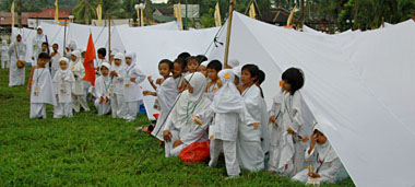 Sejumlah murid TK berkumpul di dalam kemah saat pelaksanaan wukuf Photo: Humas Kukar/Zul | | |