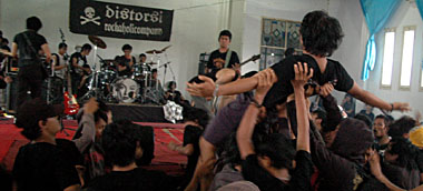 Aksi grup X-Child yang begitu enerjik membawakan musik-musik keras Photo: Agri | | |