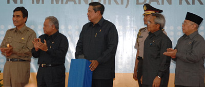 Presiden SBY menandatangani lapangan Sisi & Nubi yang dikerjakan Total E&P Indonesie di wilayah Delta Mahakam Photo: Humas Kukar/Evin