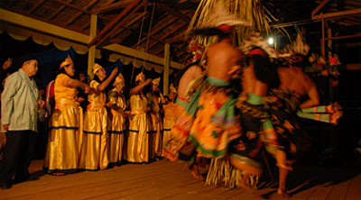 Bunyi tetabuhan gendang dan gong yang terus mengalun menambah suasana magis semakin terasa dalam upacara adat itu. Apalagi ketika 7 orang Belian mulai berputar mengelilingi sebuah Romba yang diletakkan di tengah bangunan.