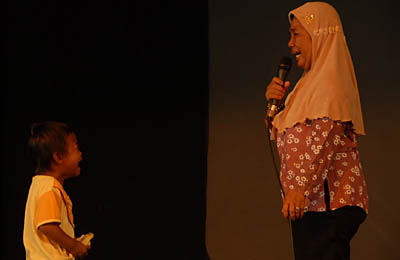 Peserta lain, Mbok Masnah, mengomeli anaknya yang lupa belajar lantaran sering bermain futsal Photo: Agri | | |