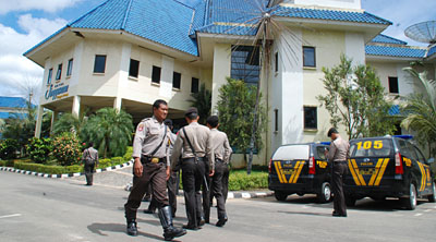 Ancaman bom terhadap Hotel Singgasana Tangga Arung tadi siang disikapi serius pihak Polda Kaltim dengan mengirimkan tim Gegana Photo: Agri
