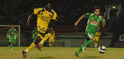 -MitraKukar-FrancoHita.jpg) Aksi Franco Hita (kanan) yang kerap merepotkan barisan pertahanan Persebaya Photo: Agri | | |