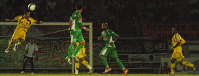 -MitraKukar-AbunawCletusLapula.jpg) Kapten Tim Abunaw Cletus Lapula yang sempat absen saat laga lawan Persisam, kali ini diturunkan untuk mengawal pertahanan Mitra Kukar dari gempuran pemain Persebaya Photo: Agri | | |