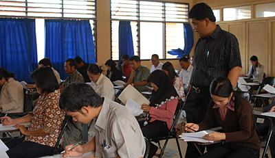 Salah seorang peserta SPMB Unikarta tampak serius mengerjakan soal Photo: Agri