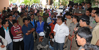 Ketua Sementara DPRD Kukar H Salehudin (tengah) meminta kepada pegawai T3D untuk bersabar sambil menanti keputusan dari Pemkab Kukar Photo: Agri