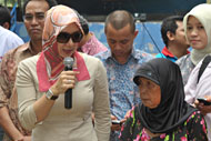 Bupati Rita Widyari saat berdialiog dengan istri alm Mbah Marijan dan korban bencana Merapi lainnya Photo: Humas Kukar/Rudy | | |
