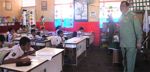 Wabup HM Ghufron Yusuf mengamati para siswa SDN 018 Tenggarong yang tampak serius menjalani Ujian Nasional Photo: Humas Kukar/Dewi