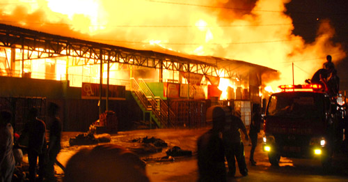 Banyaknya barang dagangan dari toko yang mudah terbakar membuat api sulit dipadamkan. Bahkan sesekali terdengar bunyi ledakan dari toko Sidomulyo yang menjual bahan bangunan.