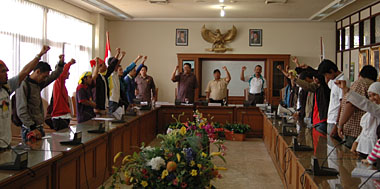 Karena pimpinan DPRD tidak berada di tempat, para pengunjukrasa akhirnya diterima 3 anggota DPRD Kukar yakni Marwan SP, H Suryadi SHut dan Irwan Mukhlis. Dihadapan anggota dewan, demonstran menyampaikan 2 tuntutannya yakni meminta DPRD Kukar membuat rekomendasi penolakan kenaikan harga BBM kepada DPR RI. "Kedua, kami menuntut agar dilakukan pengusutan secara tuntas terhadap oknum-oknum pejabat yang telah menyelewengkan pendistribusian BBM," ujar Junaidi.