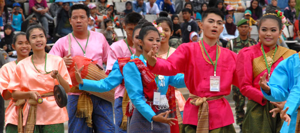 Penampilan grup I-Gi dari Taiwan saat berparade di depan tribun kehormatan Stadion Rondong Demang Photo: Agri