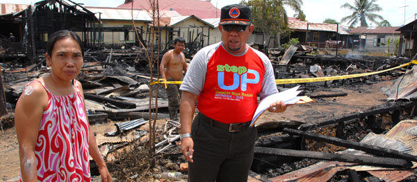 Ketua RT 5 Desa Rempanga saat mendata rumah korban kebakaran di wilayahnya Photo: Agri