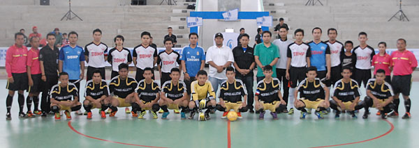 Pembukaan turnamen futsal Isyma Cup 2013 ditandai dengan penendangan bola oleh Ketua Umum KONI Kukar Abdul Rasyid menendang di Gedung Bela Diri, GOR Aji Imbut, Tenggarong Seberang, Sabtu (07/12) siang Photo: Agri