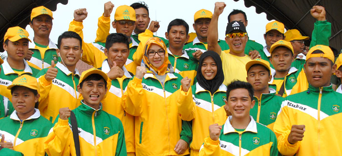 Tekad tersebut kembali digelorakan pada upacara pelepasan atlet Porprov Kukar yang dipimpin Bupati Rita Widyasari di halaman Kantor Bupati Kukar, Tenggarong, Senin (03/11) pagi.