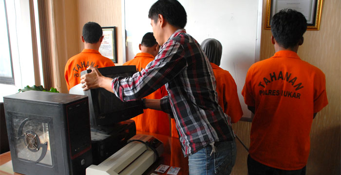 Selain menangkap 5 tersangka, polisi juga mengamankan sejumlah barang bukti berupa dua lembar KTP palsu, 2 lembar SIM B.II palsu, 1 unit komputer, 1 unit printer, 1 unit mesin laminating, serta kertas foto.