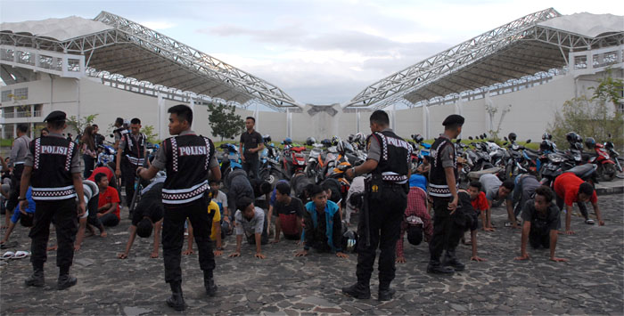 Para amor dari Tenggarong dan Samarinda diamankan petugas Satlantas Polres Kukar lantaran terlibat dalam aksi balapan liar di kompleks Stadion Aji Imbut Photo: Agri