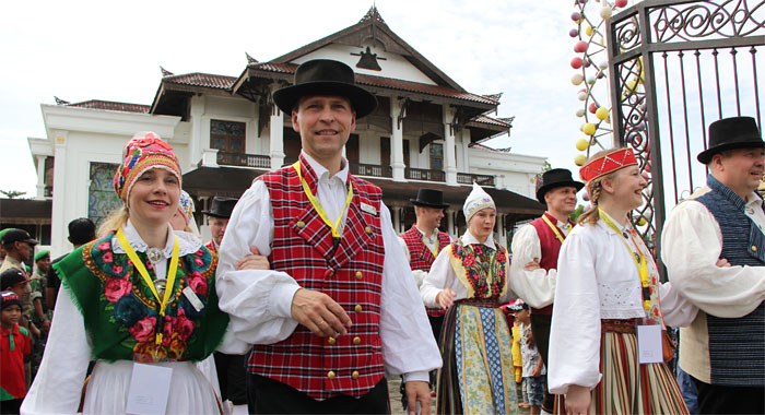 Adapun 11 negara yang tampil pada kirab budaya tadi siang adalah Estonia, Jeman, Turki, Italia, Amerika Serikat, Latvia, Slovenia, Korea Selatan, Hongaria, Malaysia dan Rusia.