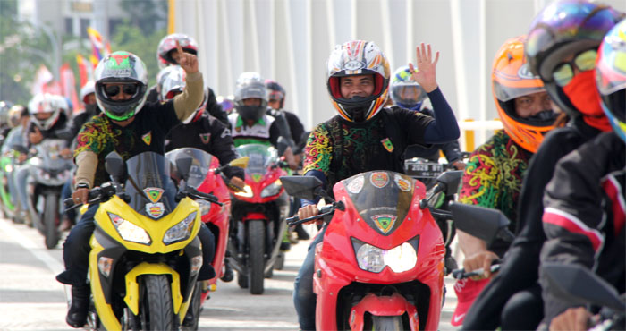 Suasana konvoi kendaraan para pejabat menandai dibukanya jembatan Kartanegara Photo: Yanda