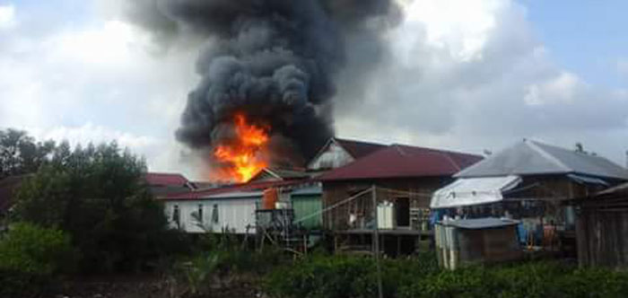 Api berkobar hebat di pemukiman warga RT 1 Desa Muara Badak Ilir Photo: Istimewa