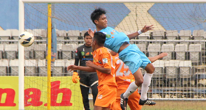M Raju Andika (kanan) menyumbangkan satu gol untuk Tenggarong Seberang Photo: Agri