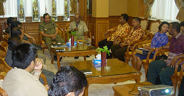 Wakil Bupati Kabupaten Raja Ampat (Provinsi Irian Jaya Barat) Drs Inda Arpan dan rombongan melakukan kunjungan kerja selama sehari ke Kabupaten Kutai Kartanegara (Kukar). Kunjungan pejabat Kabupaten Raja Ampat ini diterima langsung oleh Bupati Kukar Dr H Syaukani HR MM dan staf tadi pagi di Tenggarong.