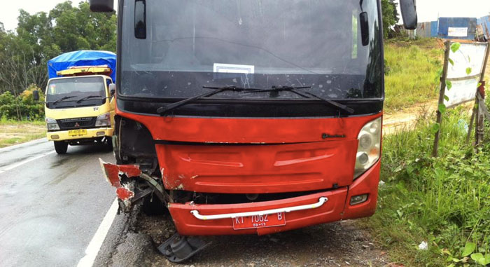 Di tengah hujan yang masih mengguyur wilayah Loa Janan, Selasa (25/10) pagi kemarin, sebuah mobil KIA Rio bertabrakan dengan bus Pemkot Samarinda di Jalan Soekarno-Hatta KM 6, Desa Purwajaya.