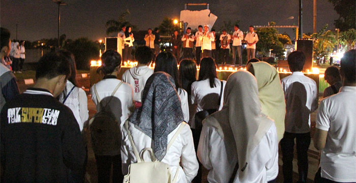 Ratusan warga Kukar menyalakan lilin dalam aksi solidaritas untuk korban bom molotov Gereja Oikumene Photo: Agri