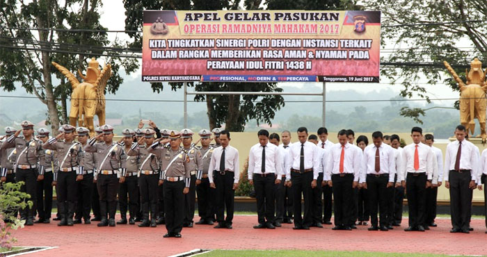 Untuk memastikan kesiapan para personil gabungan dalam rangka mengamankan perayaan Idul Fitri 1438 H, Polres Kutai Kartanegara (Kukar) melaksanakan apel Gelar Pasukan Operasi Ramadniya Mahakam 2017 di Tenggarong, Senin (19/06) pagi.