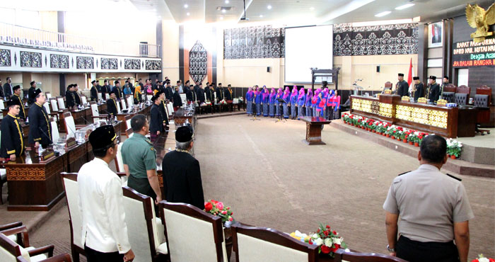 Staf Sekretariat DPRD Kukar menyanyikan lagu Mars Kota Tenggarong di sela Sidang Paripurna Istimewa DPRD Kukar dalam rangka HUT Tenggarong ke-235 Photo: Agri