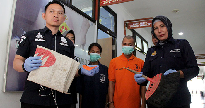 Selain menahan pasutri tersebut, lanjutnya, petugas juga mengamankan beberapa barang bukti yakni sebuah karung plastik, satu buah centong nasi dan satu buah sapu yang gagangnya telah patah.