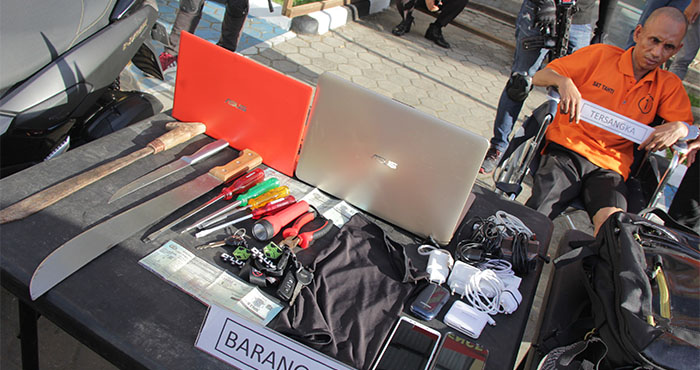 Selain meringkus para pelaku, petugas juga mengamankan sejumlah barang bukti berupa 2 unit sepeda motor yakni Honda Scoopy dan Yamaha NMax yang belum sempat dijual pelaku. Kemudian 2 buah laptop, 3 buah ponsel, 2 pasang sepatu, serta golok yang digunakan saat beraksi di dalam rumah. (win)