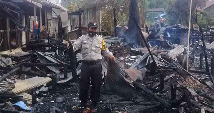 Sebanyak 6 buah rumah warga RT 1 desa Sebulu Ulu ludes terbakar Photo: Dok. Polsek Sebulu